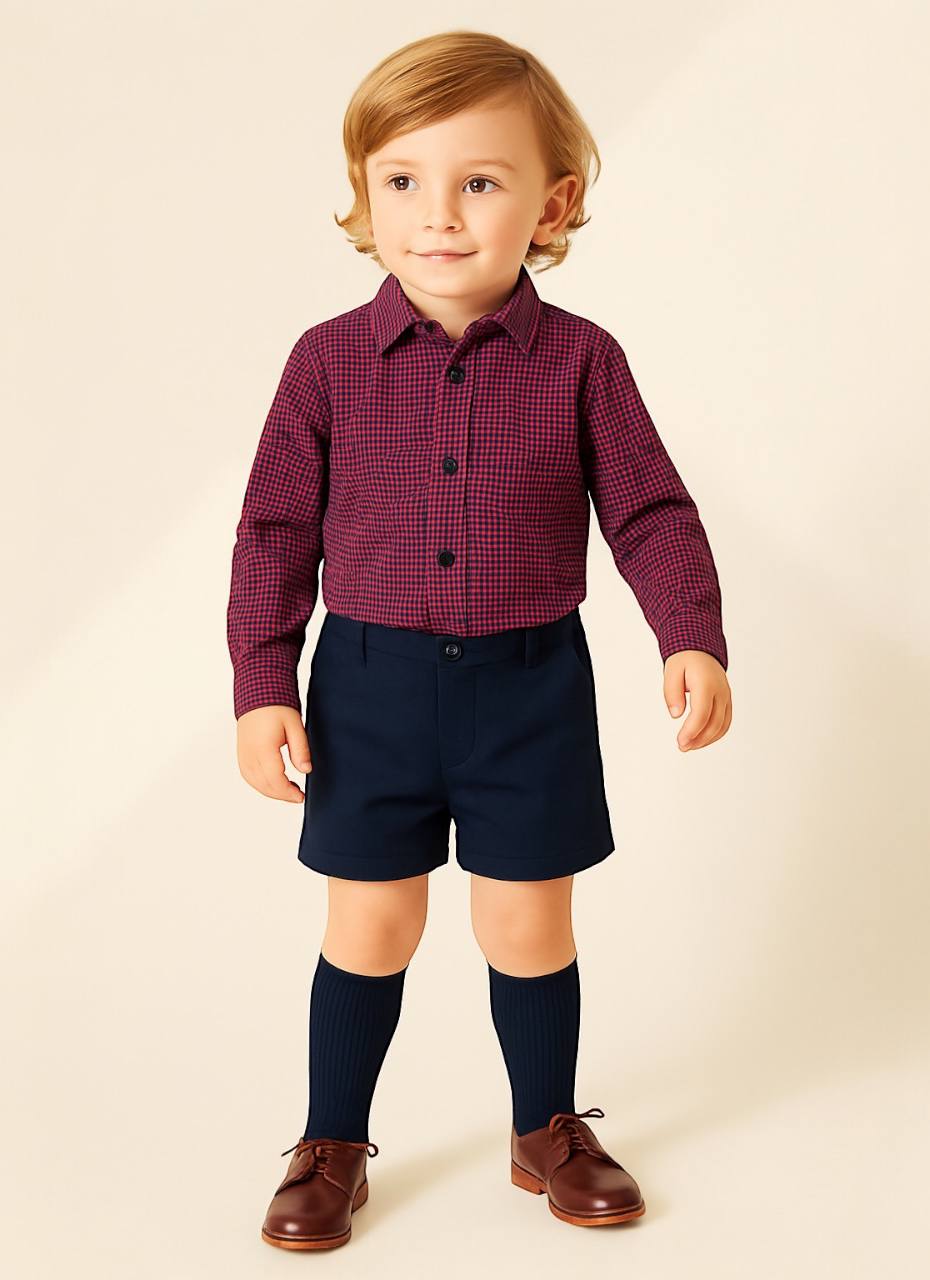 Apresentando nossa camisa de manga longa xadrez em uma rica paleta de vinho e marinho, misturando charme clássico com estilo moderno para o essencial do guarda-roupa do seu pequeno menino. Com um padrão xadrez atemporal que adiciona profundidade e caráter, esta camisa é complementada por elegantes botões na frente, oferecendo um toque sofisticado que a diferença.